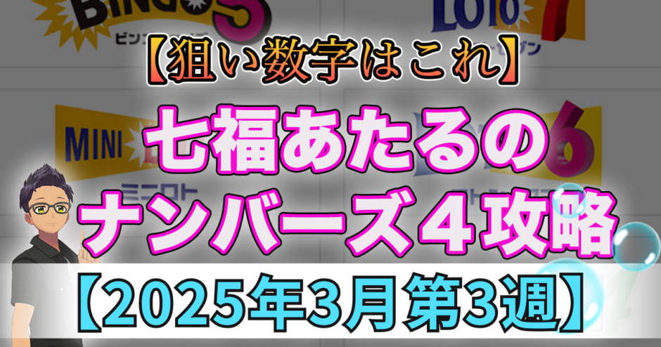 七福あたるのナンバーズ4攻略2025年3月第3週の狙い数字はこれ!予想!解析!データ推理!