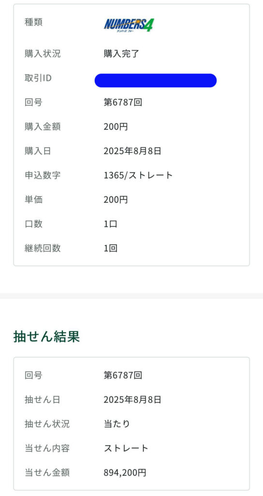 ミリオンドリームはナンバーズ4ストレートで894,200円の当選👆️