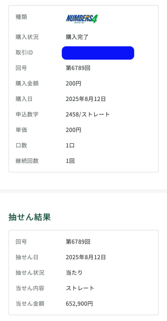 ミリオンドリームはナンバーズ4ストレートで652,900円の当選👆️