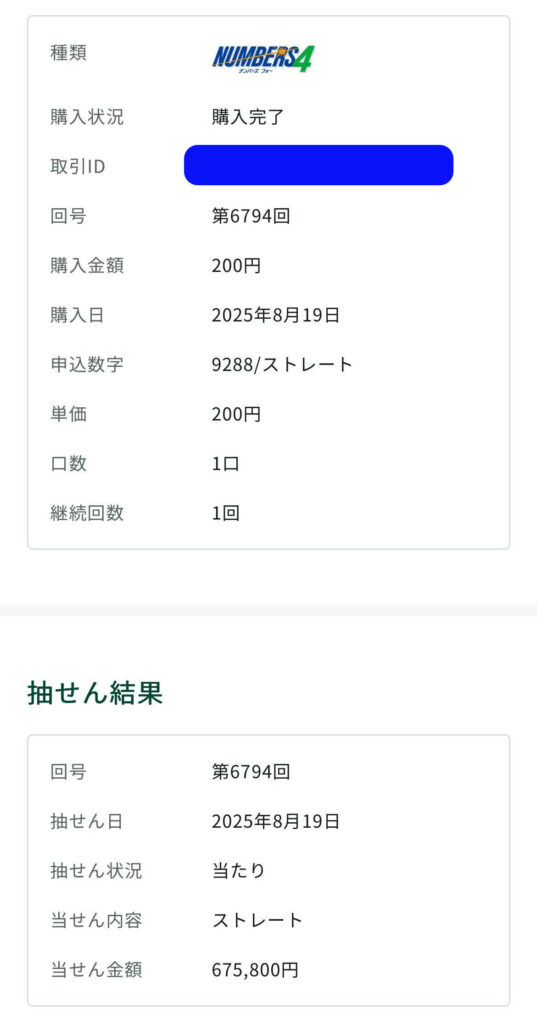 ミリオンドリームはナンバーズ4ストレート予想で675,800円の当選✌️