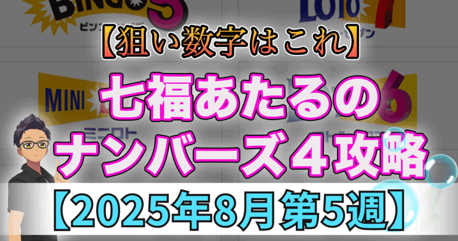 七福あたるのナンバーズ4攻略2025年8月第5週の狙い数字はこれ!予想!解析!データ推理!