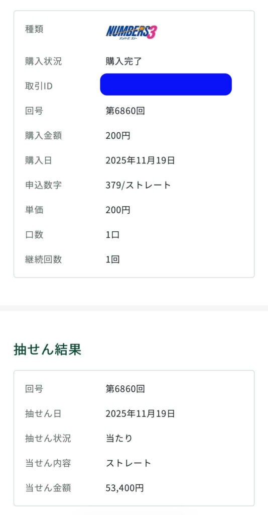 ミリオンドリームはナンバーズ4ストレートは694,000円の当選☝️