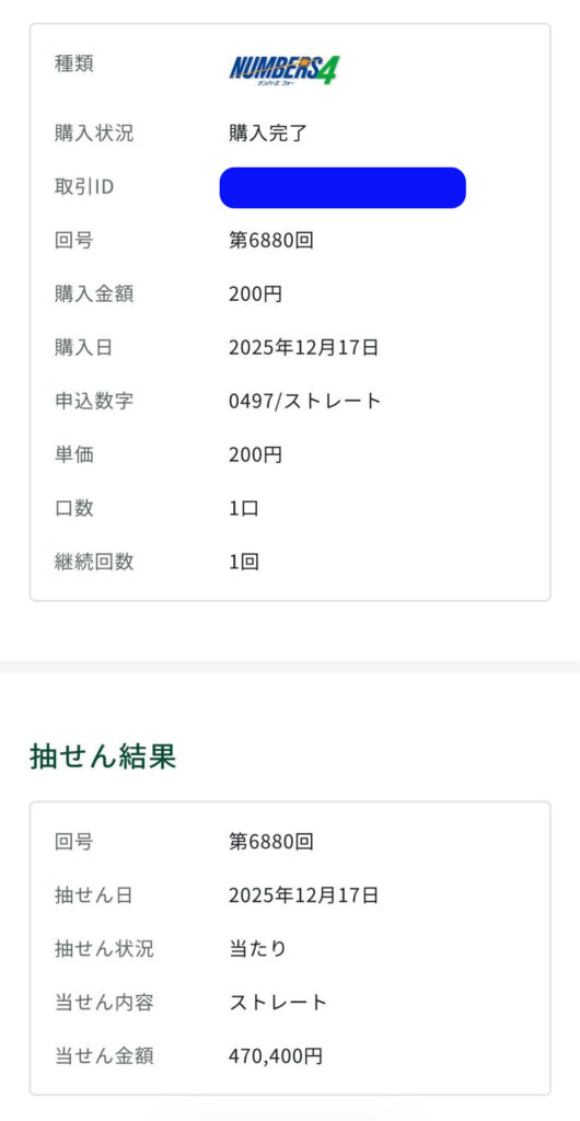 ミリオンドリームはナンバーズ4ストレートは470,400円の当選👍️