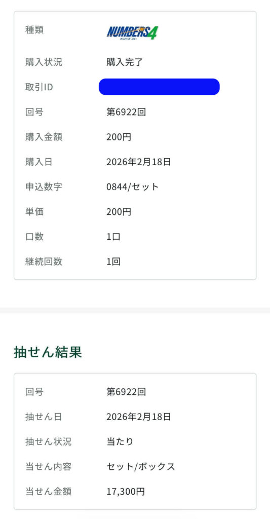 ナンバーズ3セットストレート 72,500円で当選👍️