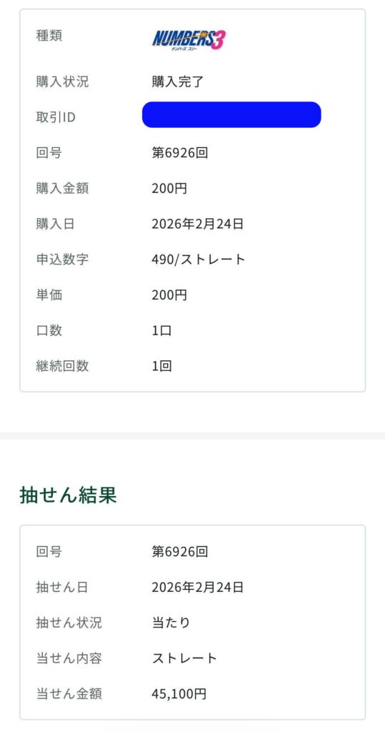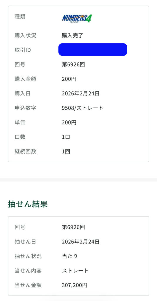 ナンバーズ4ストレート予想で307,200円の当選☝️