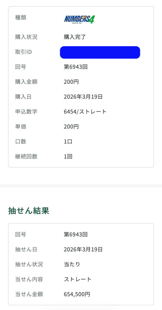 ナンバーズ4ストレート予想は654,500円の当選✌️