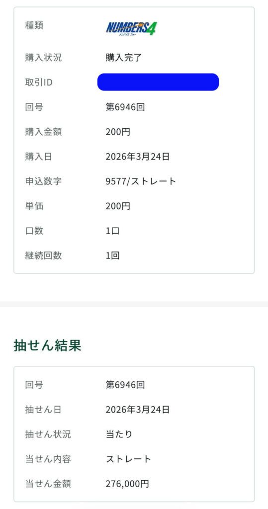 ナンバーズ4ストレート予想は276,000円👍️